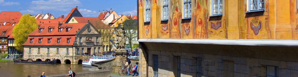 Lassen Sie sich Bamberg keinesfalls entgehen. Die Altstadt ist so gut erhalten, dass sie 1993 von der UNESCO zum Weltkulturerbe ernannt wurde. Aus der 1000jährigen Geschichte der Stadt gibt es noch vieles zu entdecken. Schlendern Sie durch verwinkelte Gässchen zwischen historisch wertvollen Gebäuden, blicken Sie vom Kloster Michelsberg über die Dächer der Altstadt, besichtigen Sie den bekannten Dom oder die Residenz. Auch das moderne Bamberg hat eine Menge zu bieten: Hier gibt es nicht nur viele kleine Läden mit einem interessanten Angebot, sondern auch Festivals und Veranstaltungen rund ums Jahr.