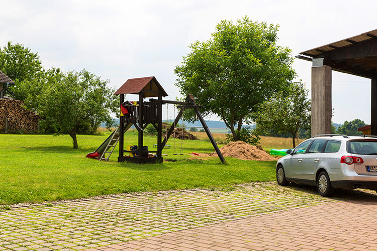 Wohnen auf dem Land bietet natürlich auch viel Platz draußen. Sie parken bequem direkt vor der Haustür, neben unserer großen Spiel- und Liegewiese mit schattenspendenden Obstbäumen. Hier können Sie in aller Ruhe die Seele baumeln lassen oder mit Ihren Kindern rumtoben. Oder starten Sie direkt von hier einen Spaziergang oder auch Wanderausflug in die herrliche Natur des Steigerwalds.