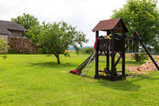 - Kinderspielturm mit Rutsche, Schaukel und Sandkasten