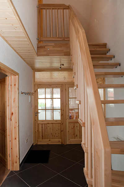 Vom Flur aus erreichen Sie bequem alle Zimmer und wenn die Schlafmöglichkeiten mal nicht ausreichen geht´s über die Treppe hinauf in den Dachspitz, wo bequem weitere zwei Personen schlafen können.