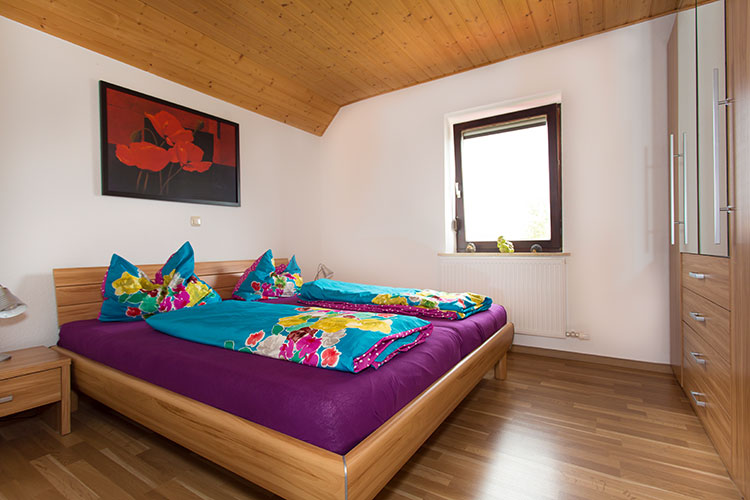 Jeder Tag geht einmal zu Ende und nichts ist im Urlaub wichtiger, als nach einem ereignisreichen Tag selig dahinzuschlummern. So starten Sie am nächsten Morgen gut ausgeruht in einen neuen Urlaubstag voller Abwechslung. Ein weiteres Schlafzimmer mit Doppelbett befindet sich oben im Dachspitz.